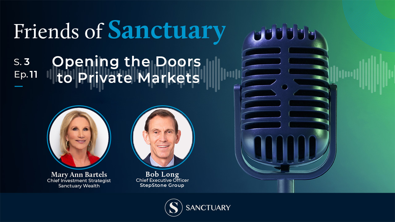To wrap Season 3 of the Friends of Sanctuary podcast, Sanctuary Wealth Chief Investment Strategist Mary Ann Bartels sat down with Bob Long, CEO of StepStone Private Wealth and an expert in private markets for more than three decades. From growth of private credit in wealth management, the appeal of evergreen funds, venture capital, and the state of the economy, Bob and Mary Ann close out 2025 and digest what to watch in 2026.